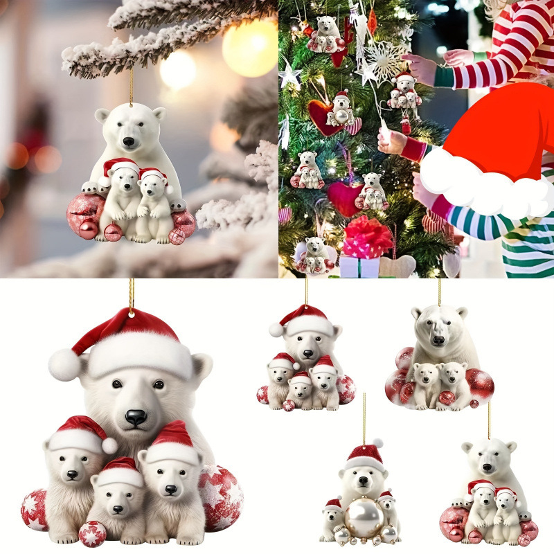 2D小さなプレゼントホッキョクグマ家庭クリスマスツリーストラップ自動車装飾バックミラーストラップクリスマスツリークロスボーダー専用