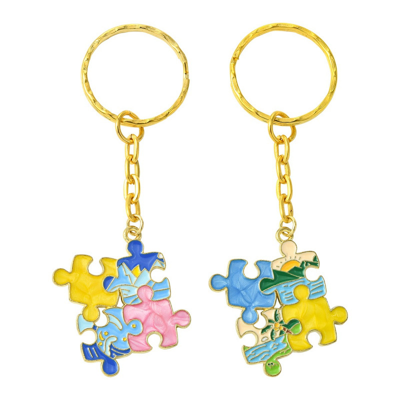 国境を越えた貿易ジュエリーカラーパズルオイル滴下パーソナライズされた幾何学的な漫画キーホルダーバッグペンダントイヤリング卸売