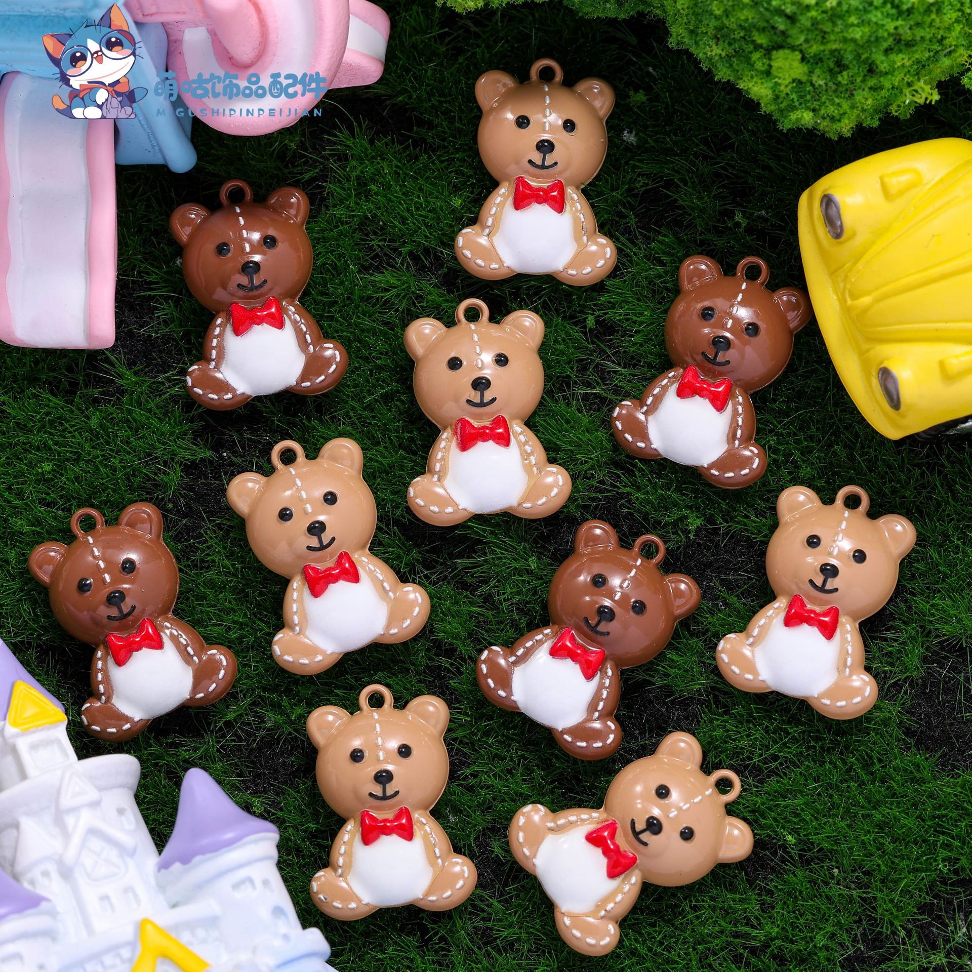 亜鉛合金ビッグレッド蝶ネクタイクマペンダントペンダント DIY インターネット有名人漫画かわいいスプレーペイントオイルドリップジュエリーバッグアクセサリー