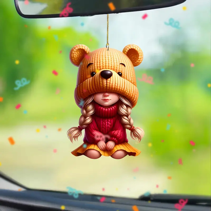 クロスボーダー爆型少女黄熊帽平面ストラップ車載ストラップキーホルダー小ストラップ車載ストラップ