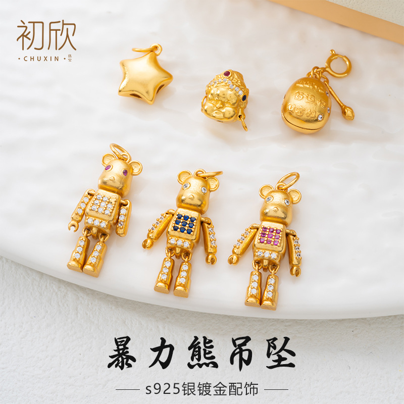 S925 シルバーゴールドメッキ暴力クマ健康と幸運木魚スターペンダントネックレスシングルペンダントブレスレットペンダント DIY アクセサリー