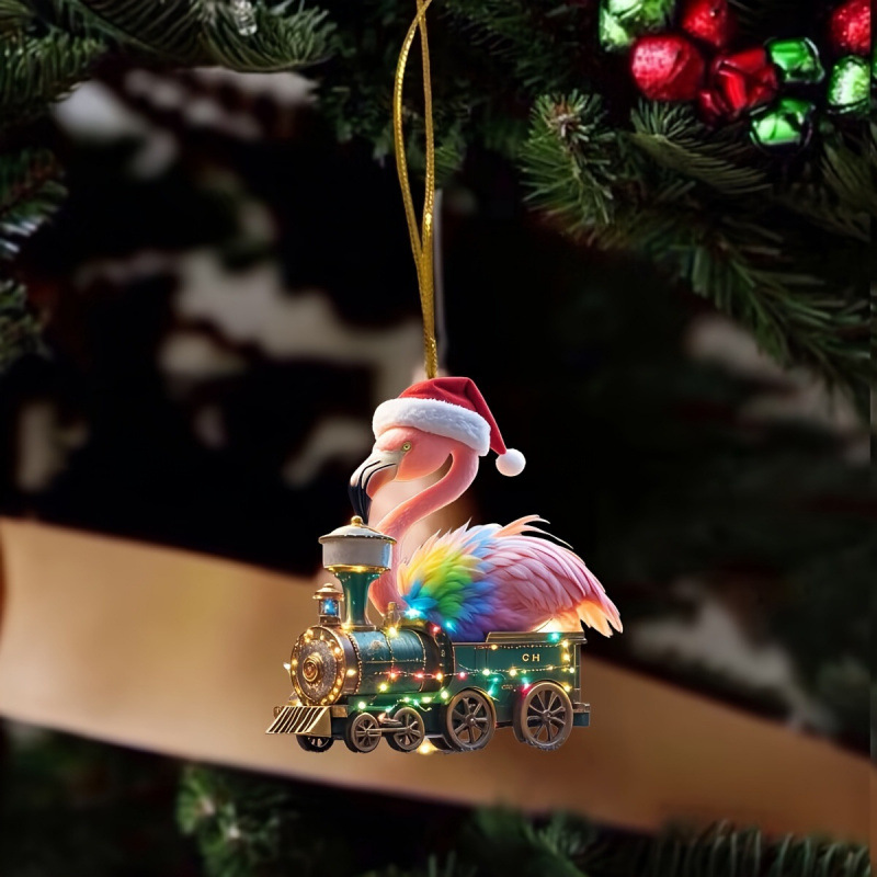 クリスマスツリー装飾2D平面フラミンゴクリスマス列車装飾品クロスボーダー爆金専用ペンダント