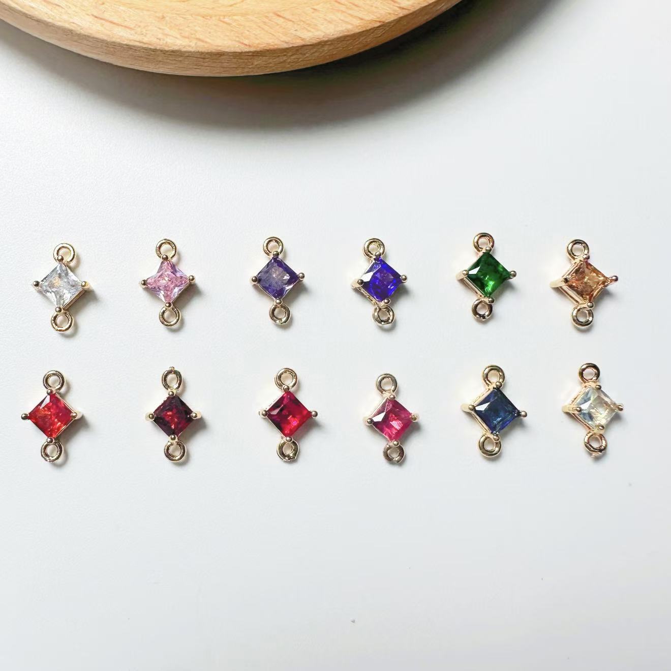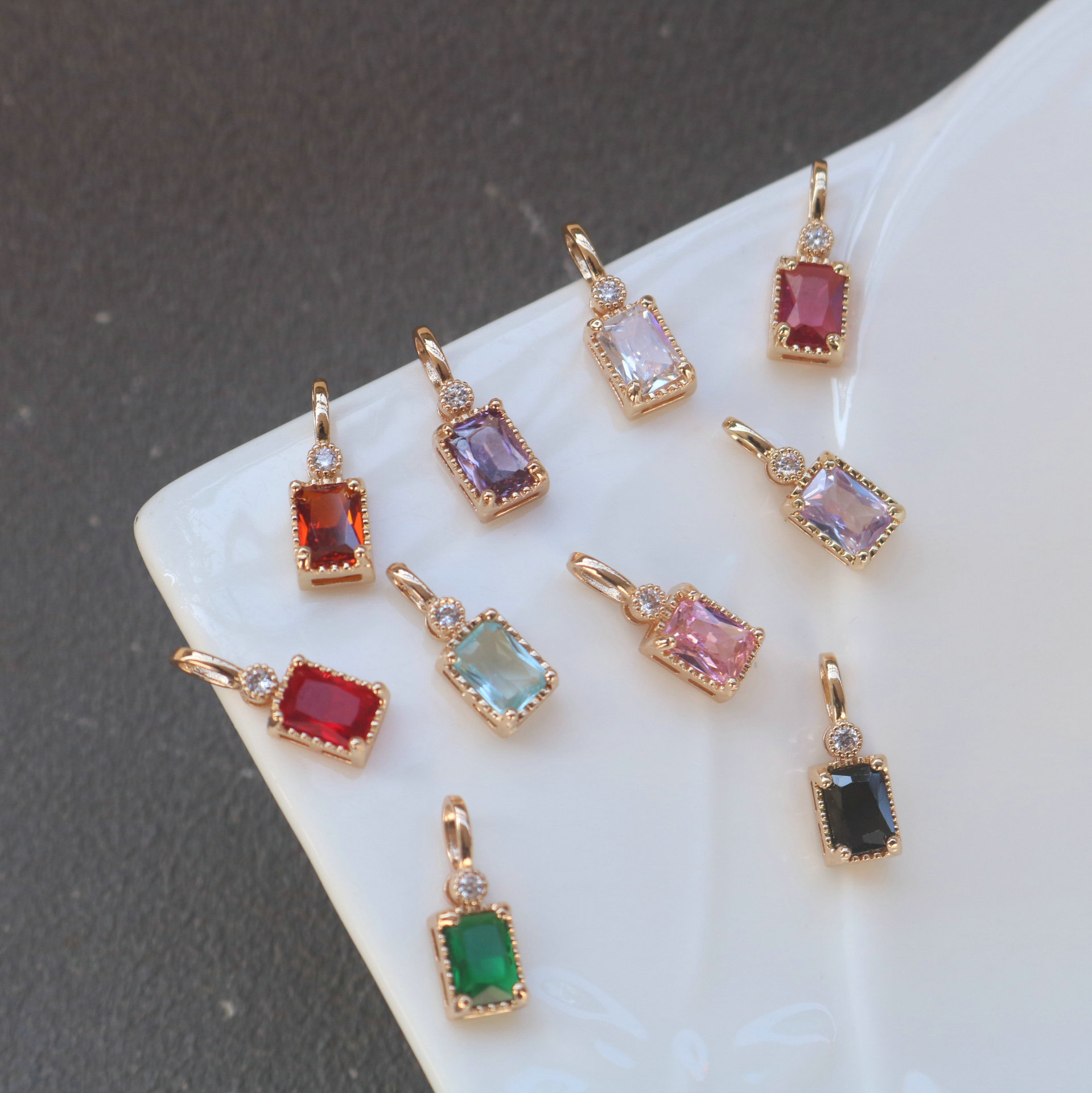 銅メッキ14k包金保色カラージルコン長方形ペンダントdiyブレスレットネックレス耳飾りヘアピンアクセサリー部品