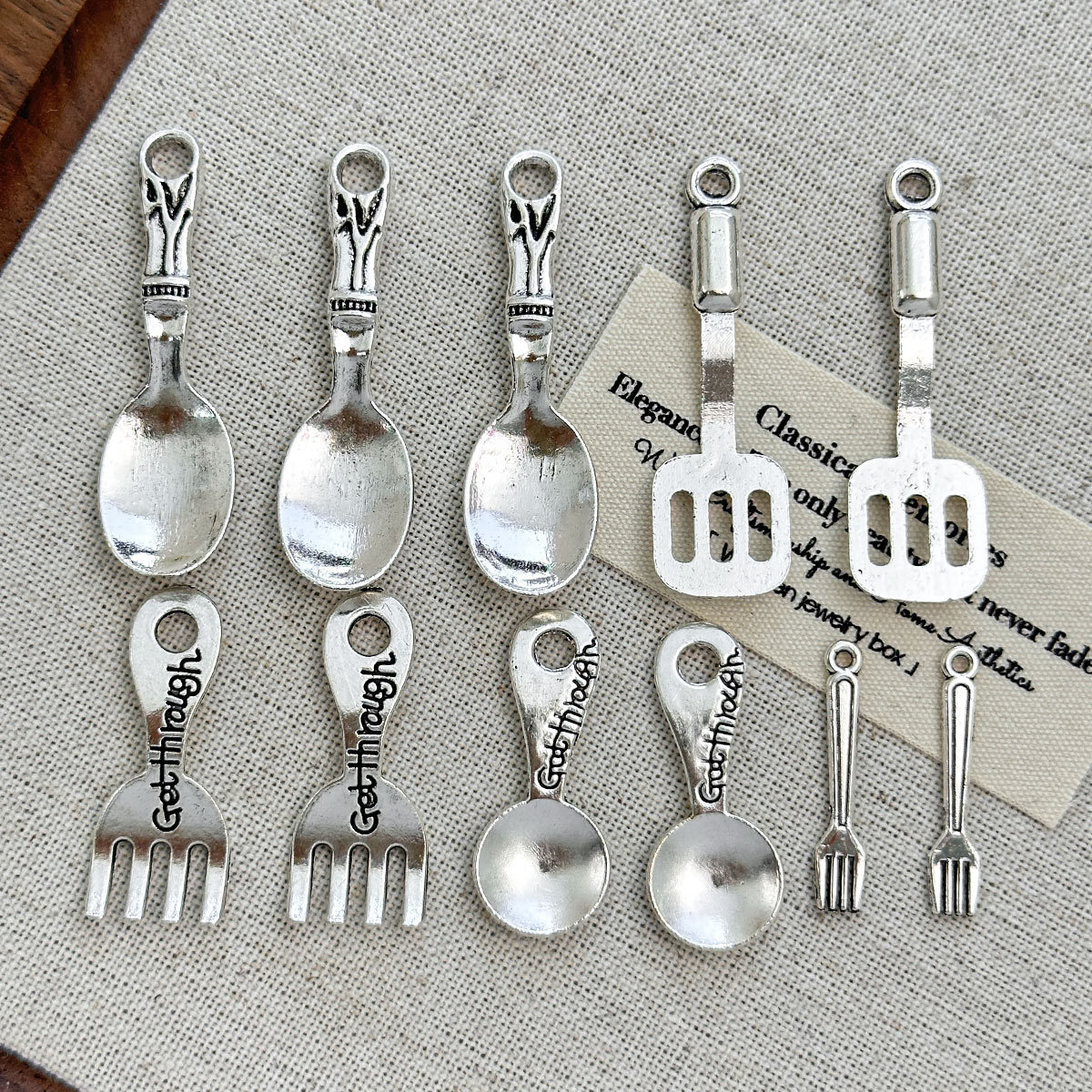 クリエイティブ古代シルバーナイフ、フォーク、スプーン合金ペンダントペンダント DIY ビーズアクセサリー携帯電話チェーン装飾アクセサリーこのアリ