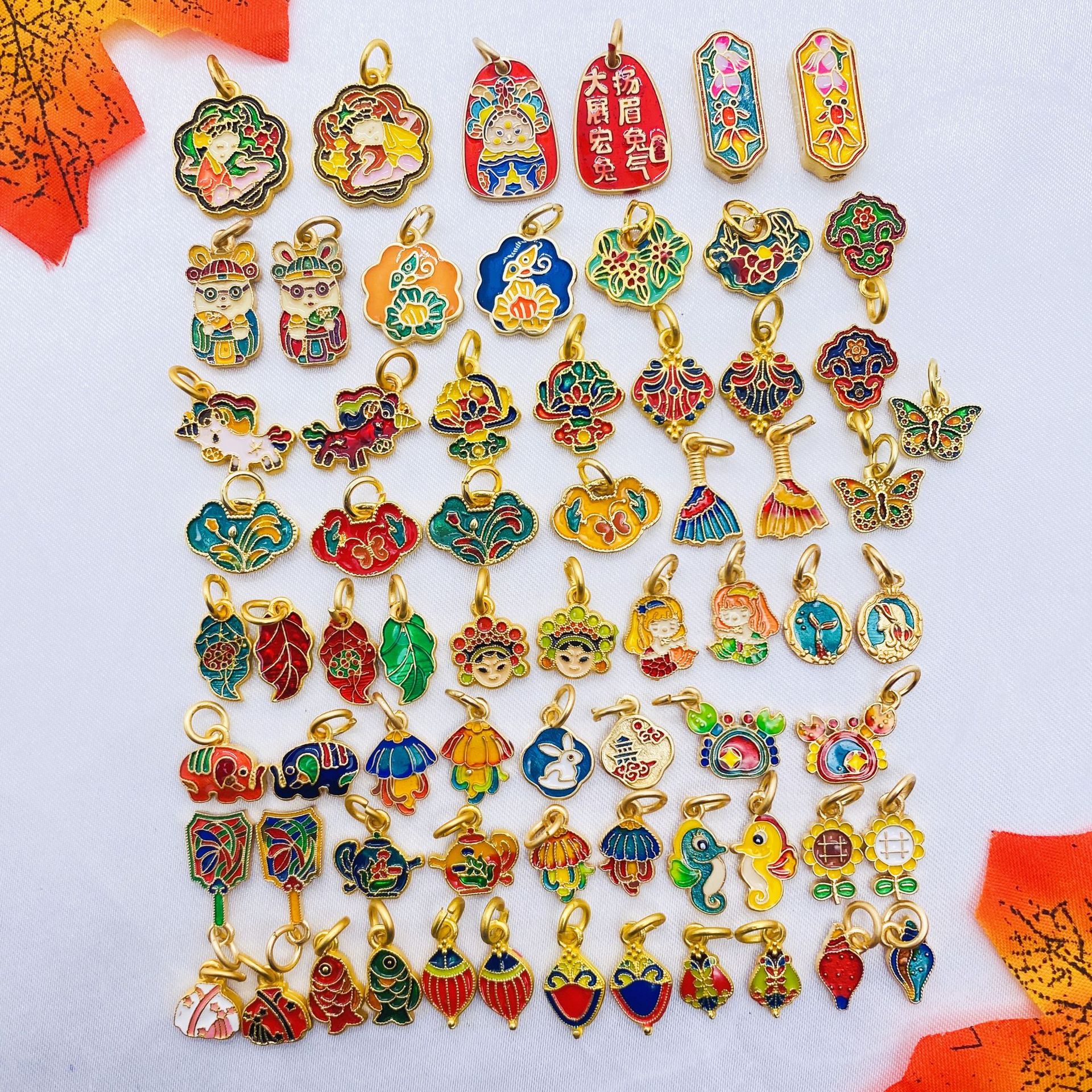 中国の伝統的な古代方法サンドゴールドエナメルドリップオイルドロップペンダント diy ブレスレットネックレスジュエリーアクセサリー材料ペンダント