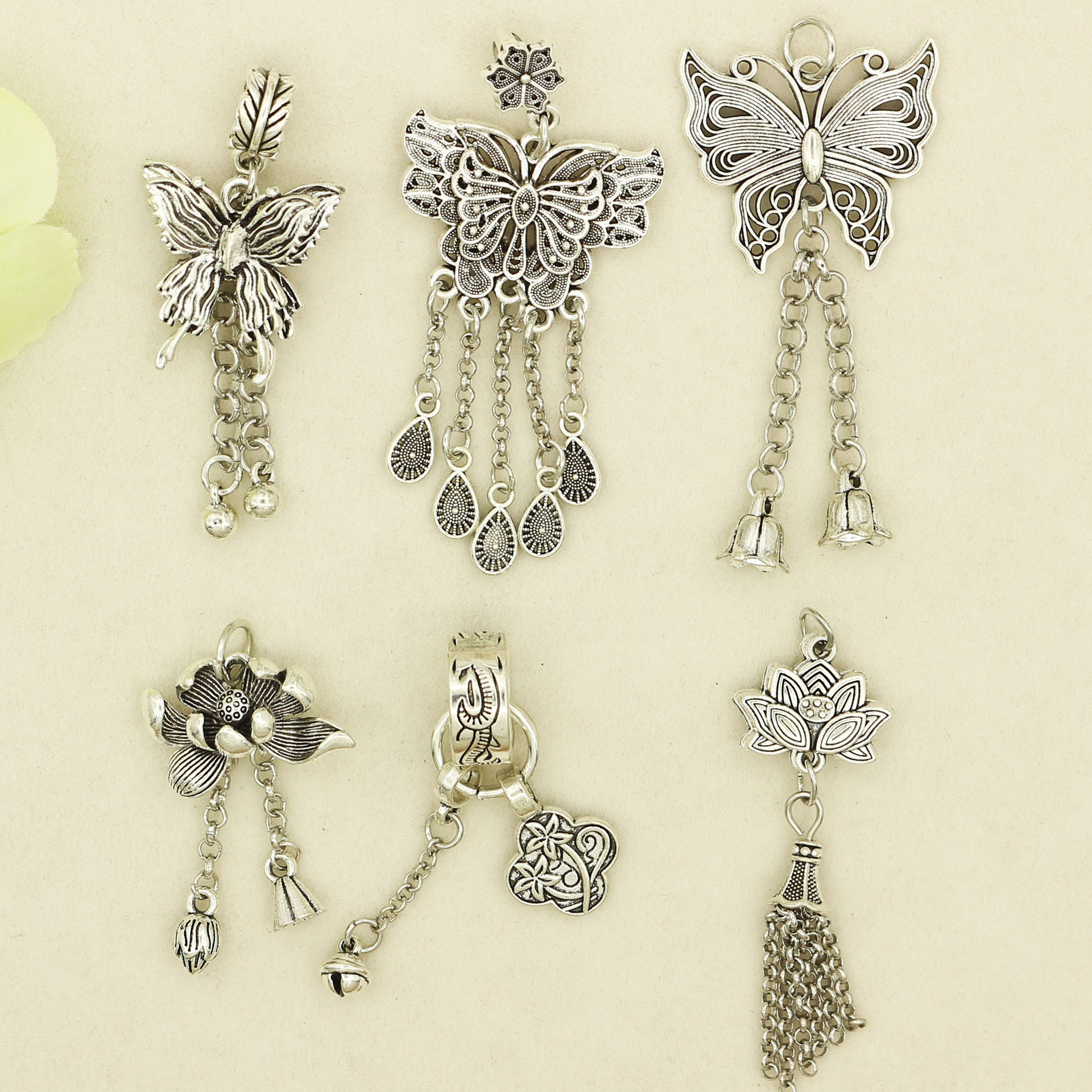 チベット銀レトロ蝶流蘇ペンダントdiy水晶手串蓮ペンダントネックレスアクセサリー泰銀アクセサリー