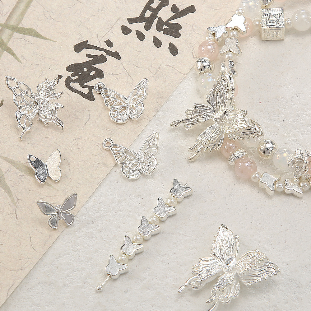【亮銀蝶】合金ペンダント飾り手作りdiyビーズビーズブレスレットネックレスアクセサリー材料部品