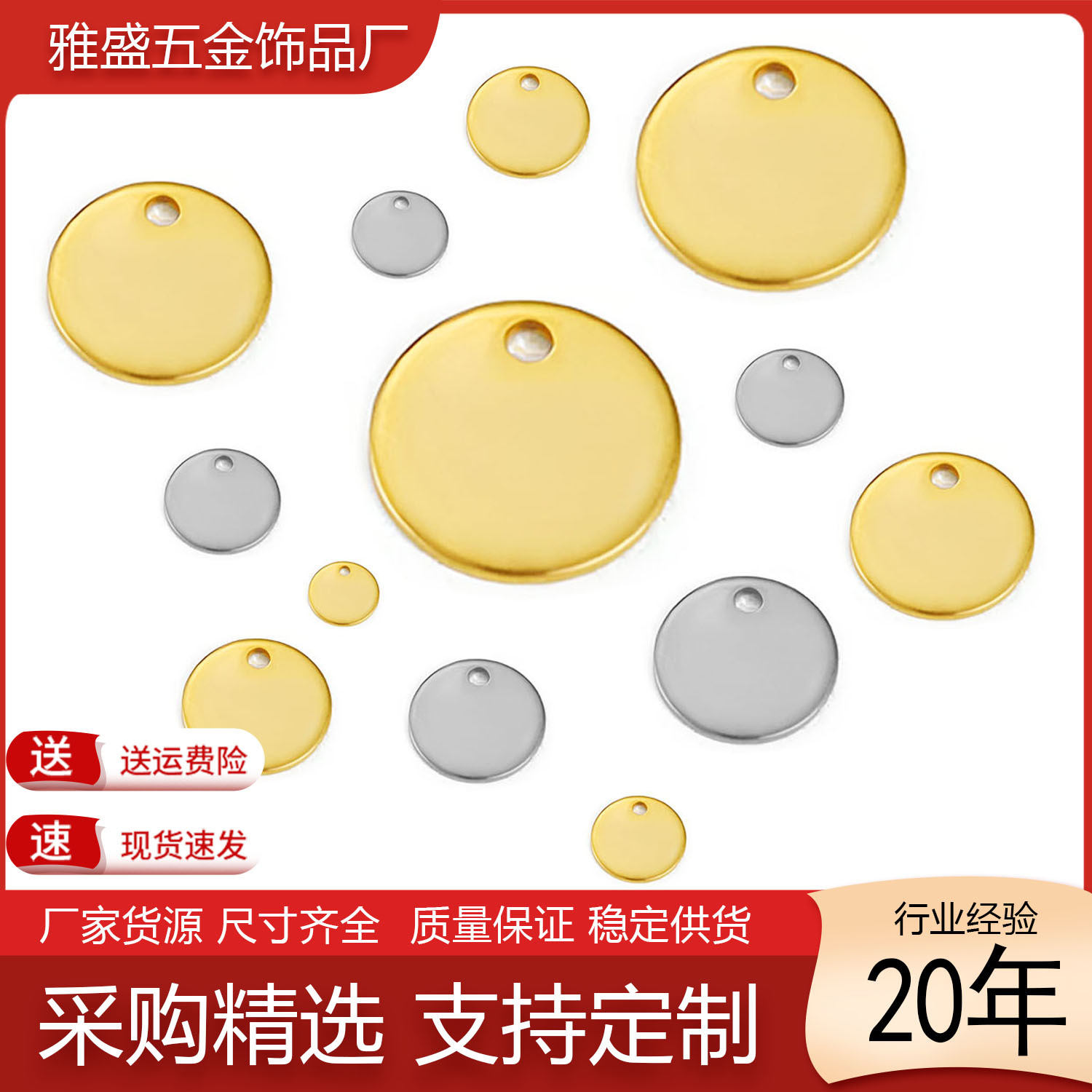 クロスボーダー専用304ステンレスペンダント単孔丸牌チタン鋼ネックレスブレスレットLOGO尾牌DYIアクセサリー部品