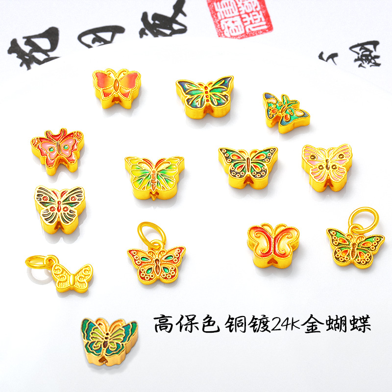 エナメルサンドゴールド蝶のブレスレット、ネックレス、ビーズ、ビーズアクセサリー、女性用ペンダントアクセサリー
