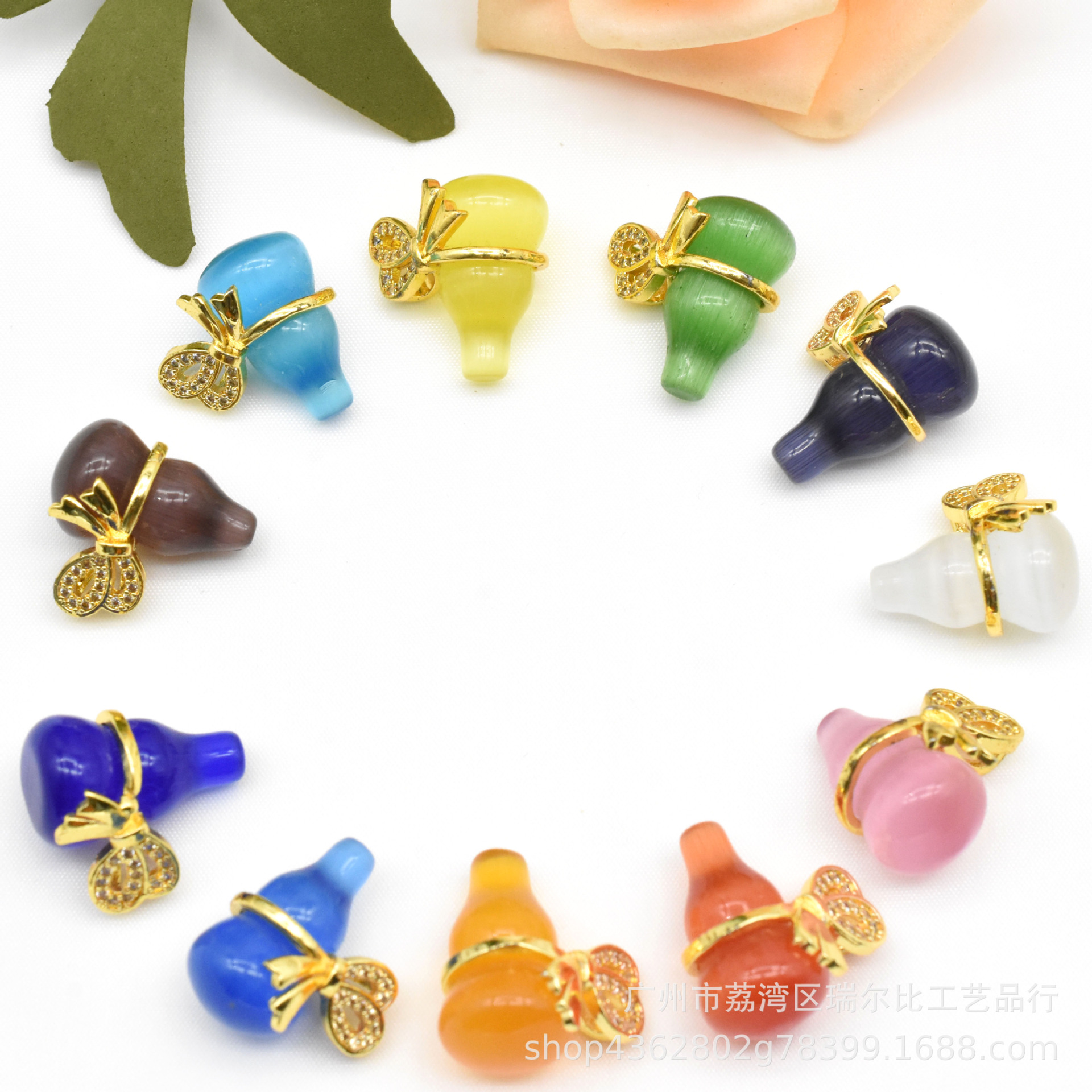 微ドリル蝶リボン立体猫眼石ひょうたん招財福禄宝石diy部品