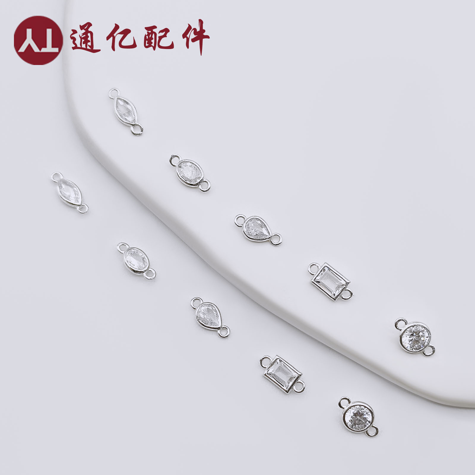 S925純銀双吊ジルコンペンダント馬眼双穴ペンダント水滴形円形ジルコンdiy部品卸売り