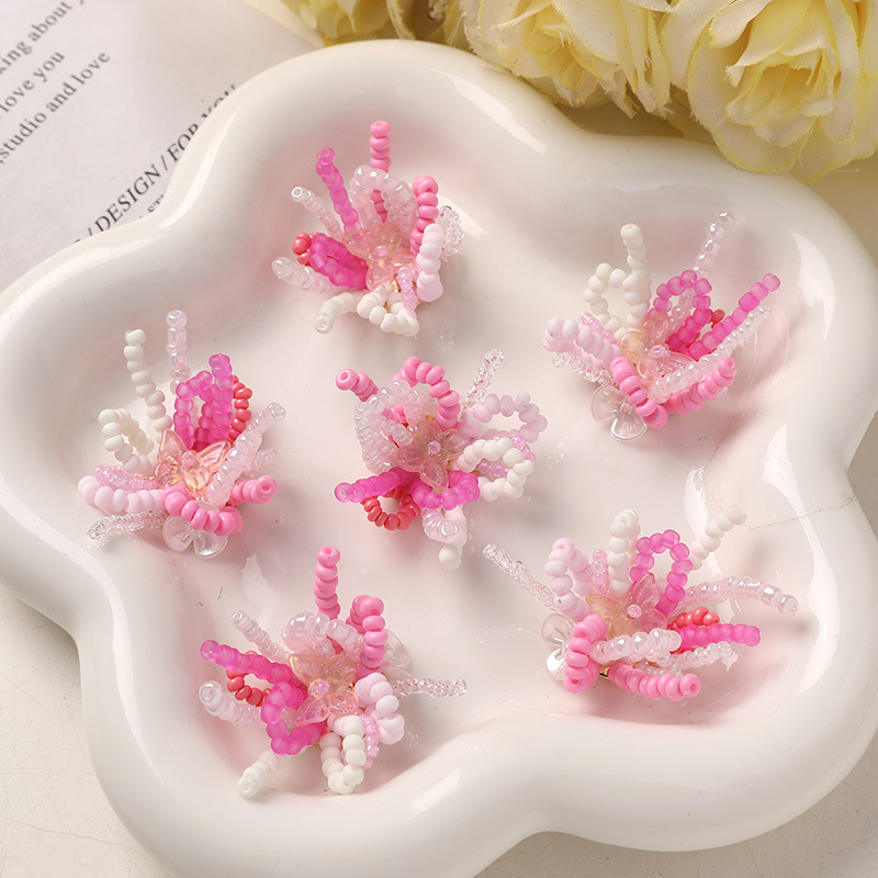 オリジナル隣の女の子ピンク甘い花クラスター diy 手織り花イヤリングイヤリングバッグ靴と帽子アクセサリー