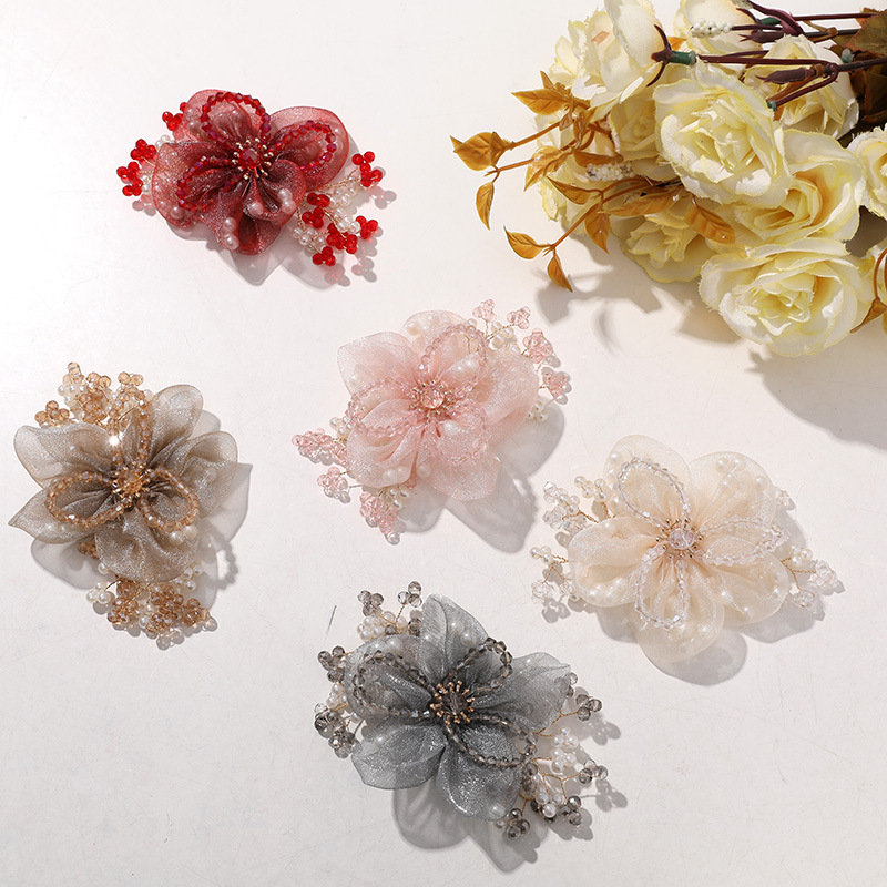 オリジナル甘くてかわいい模造パールクリスタルメッシュ五弁花 diy 手作り多用途ヘアピン頭飾り衣類アクセサリー