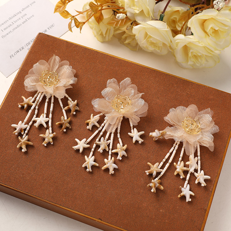 プリンセス娘気質タッセルスターフラワーガーゼフラワーdiyヘアアクセサリーイヤリング女性コサージュ衣類アクセサリー