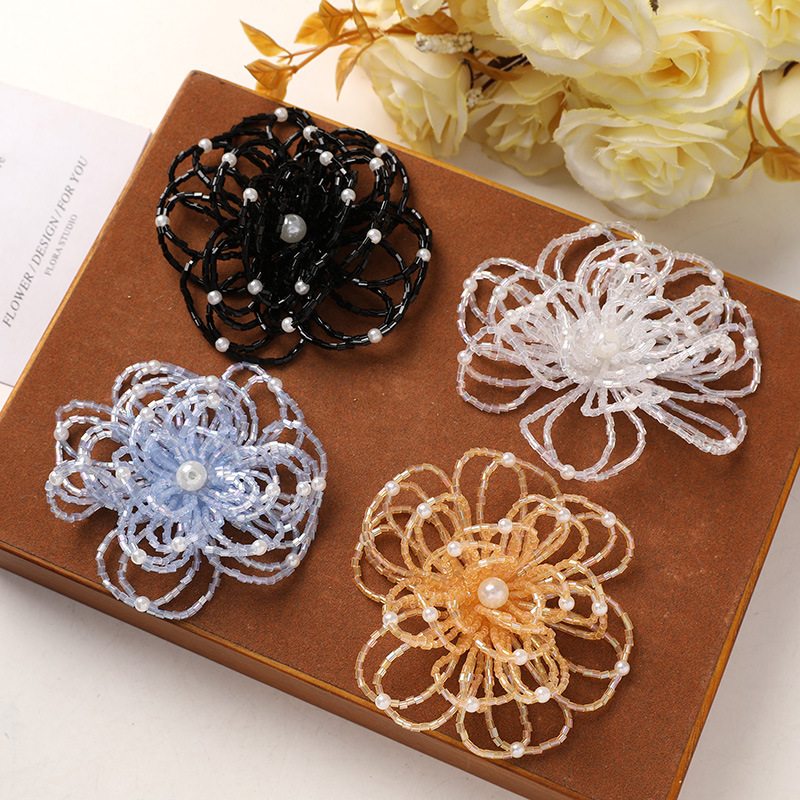 韓国風手縫いビーズ中空花布ステッカー diy 花アクセサリーサイドクリップ靴花衣類パッチ