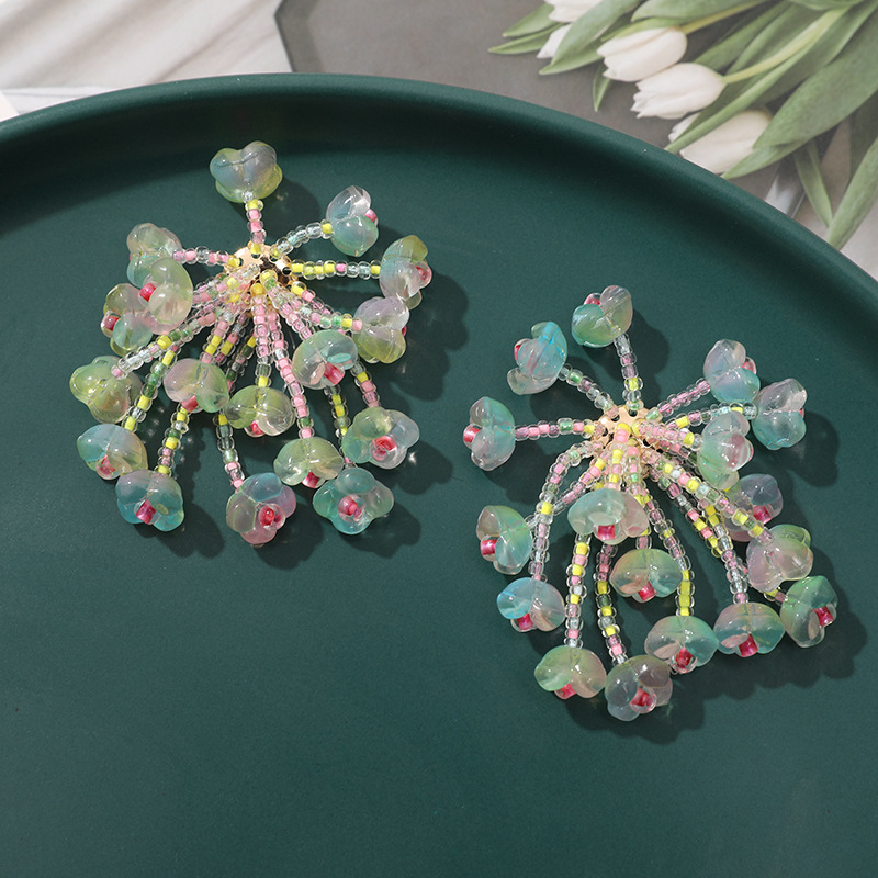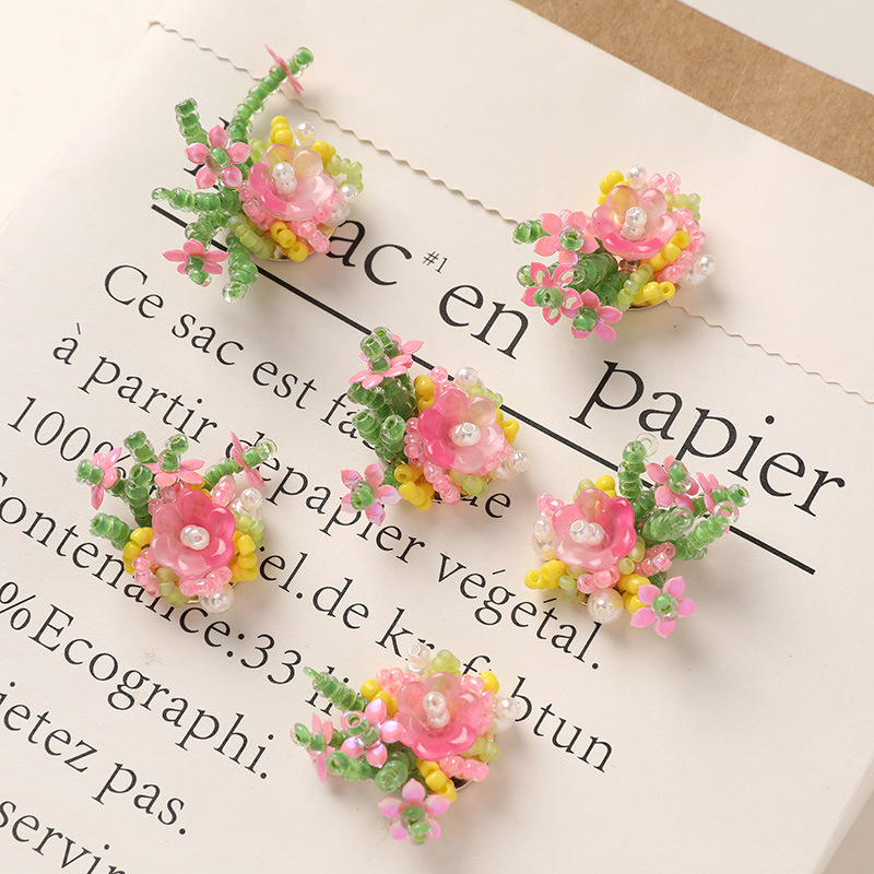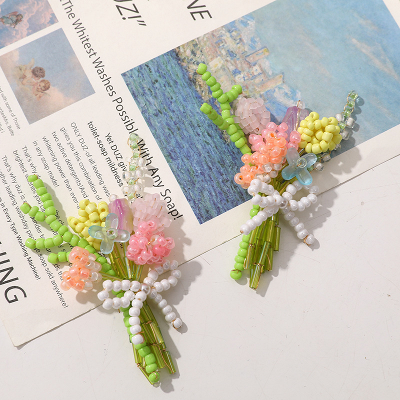オリジナル早春の森スタイルグリーン野花海米ビーズフラワークラスター DIY 新鮮で鮮やかなイヤリングピンサイドクリップ靴花アクセサリー