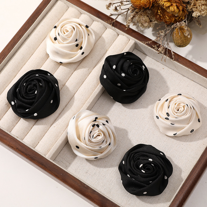韓国初秋の優しいサテンフラワーアート水玉ローズ DIY 手作りヘアバンドヘッドバンド手首の花衣類アクセサリー
