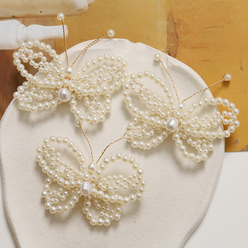 日本と韓国の甘いパールライスビーズ蝶アクセサリー diy 手織りビーズヘアピンヘアアクセサリーイヤリング材料卸売