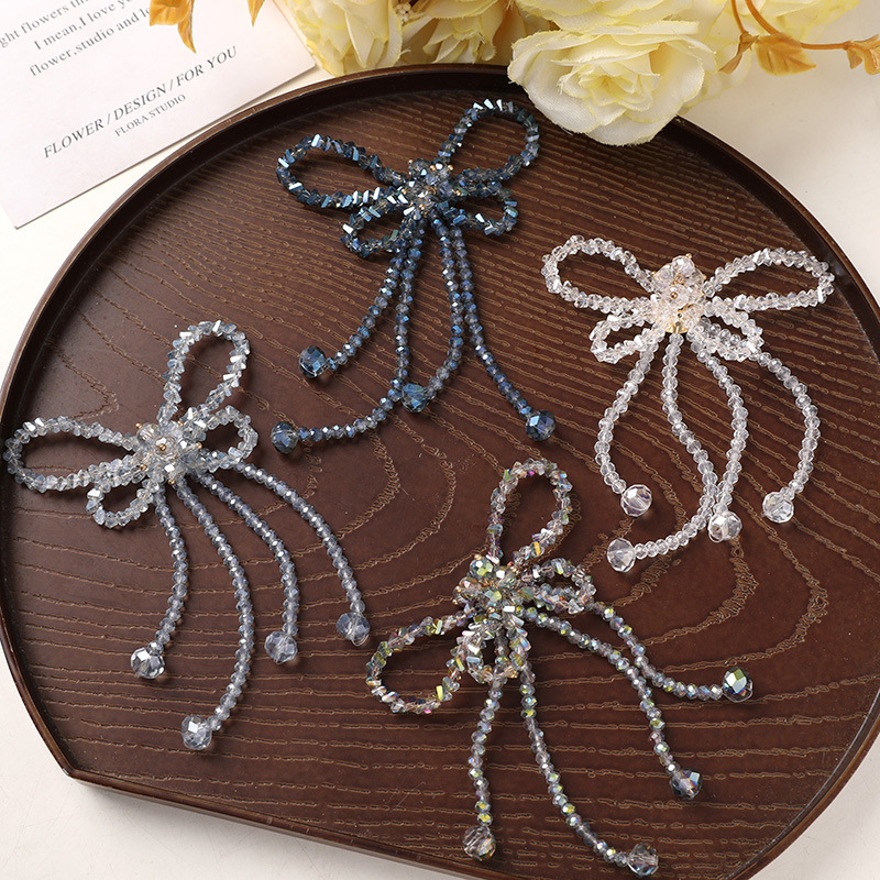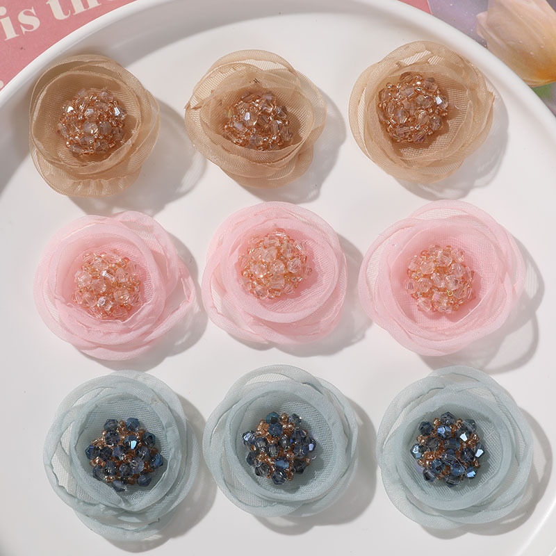 韓国版かわいい水晶焼辺網紗花蕾diy手織りビーズヘアピン髪飾り材料卸売り