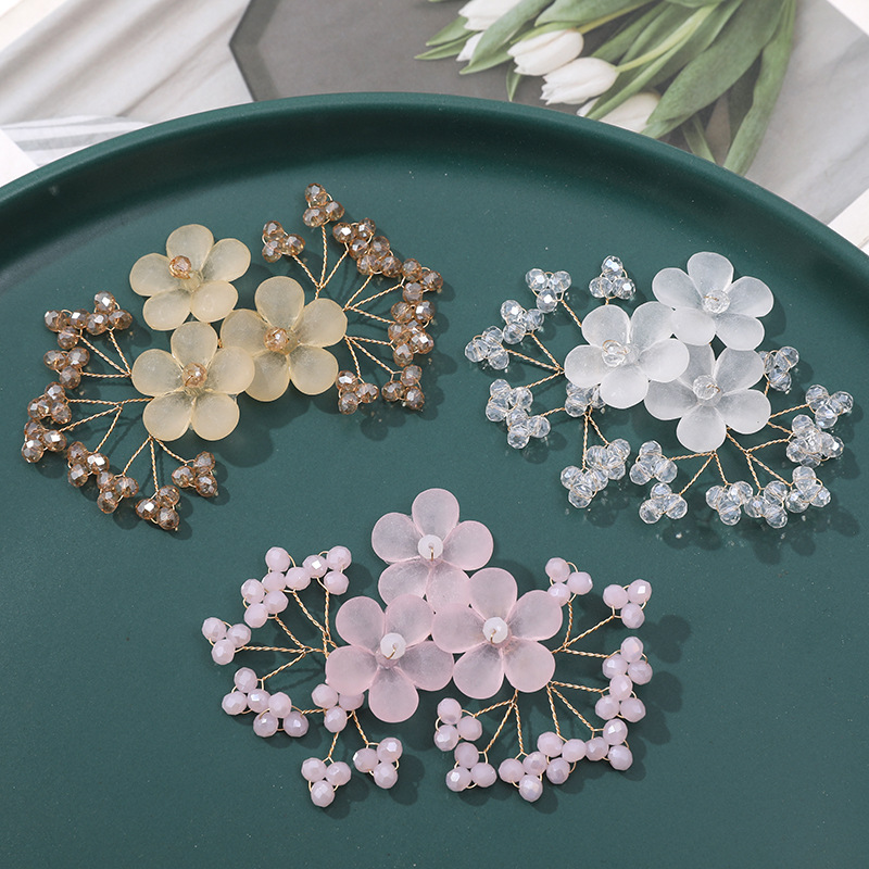 新中国風艶消し水晶花クラスタdiy手織りビーズヘアピン髪飾り材料卸売り
