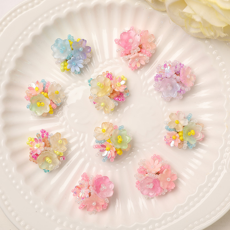 春夏の雰囲気フラワーライスビーズアジサイフラワークラスターdiyドーパミンガールイヤリングイヤリングエッジクリップ靴フラワーアクセサリー