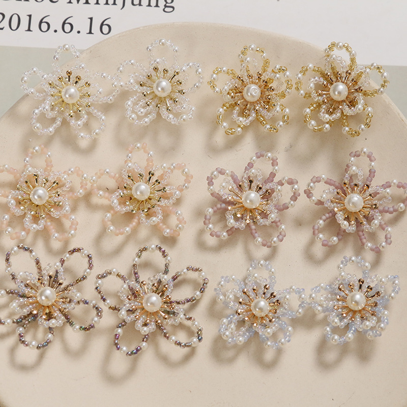 ライト高級小さな香りスタイル二層パールフラワー diy 手織りビーズヘアピンヘアアクセサリーイヤリング材料卸売