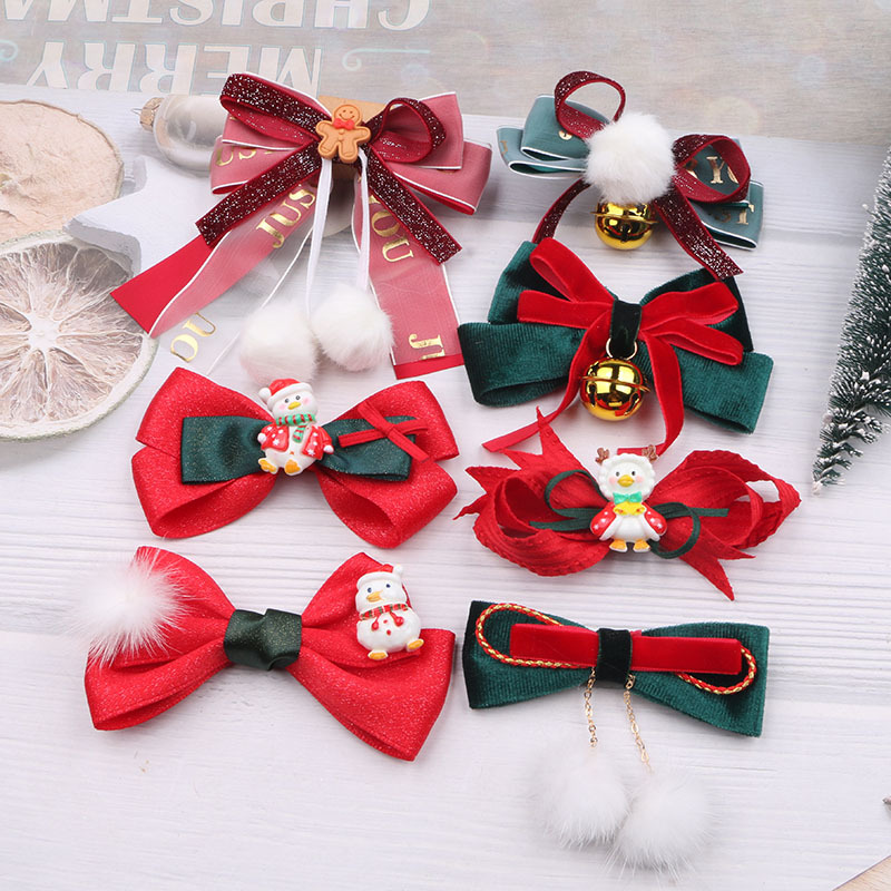 クリスマスのアクセサリーの秋の冬の半製品の蝶結びの補助材料の手作りの子供のヘアピンdiyの髪飾りの材料