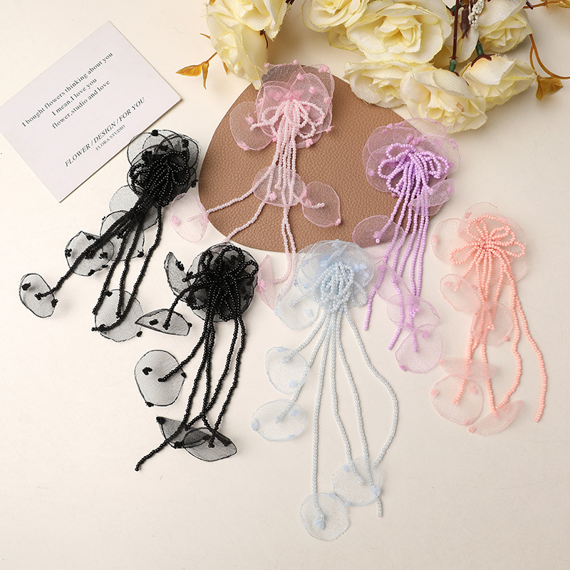 妖精甘いロングタッセルライスビーズ軽いガーゼ花びら布ステッカー diy イヤリングイヤリングスカート服花アクセサリー