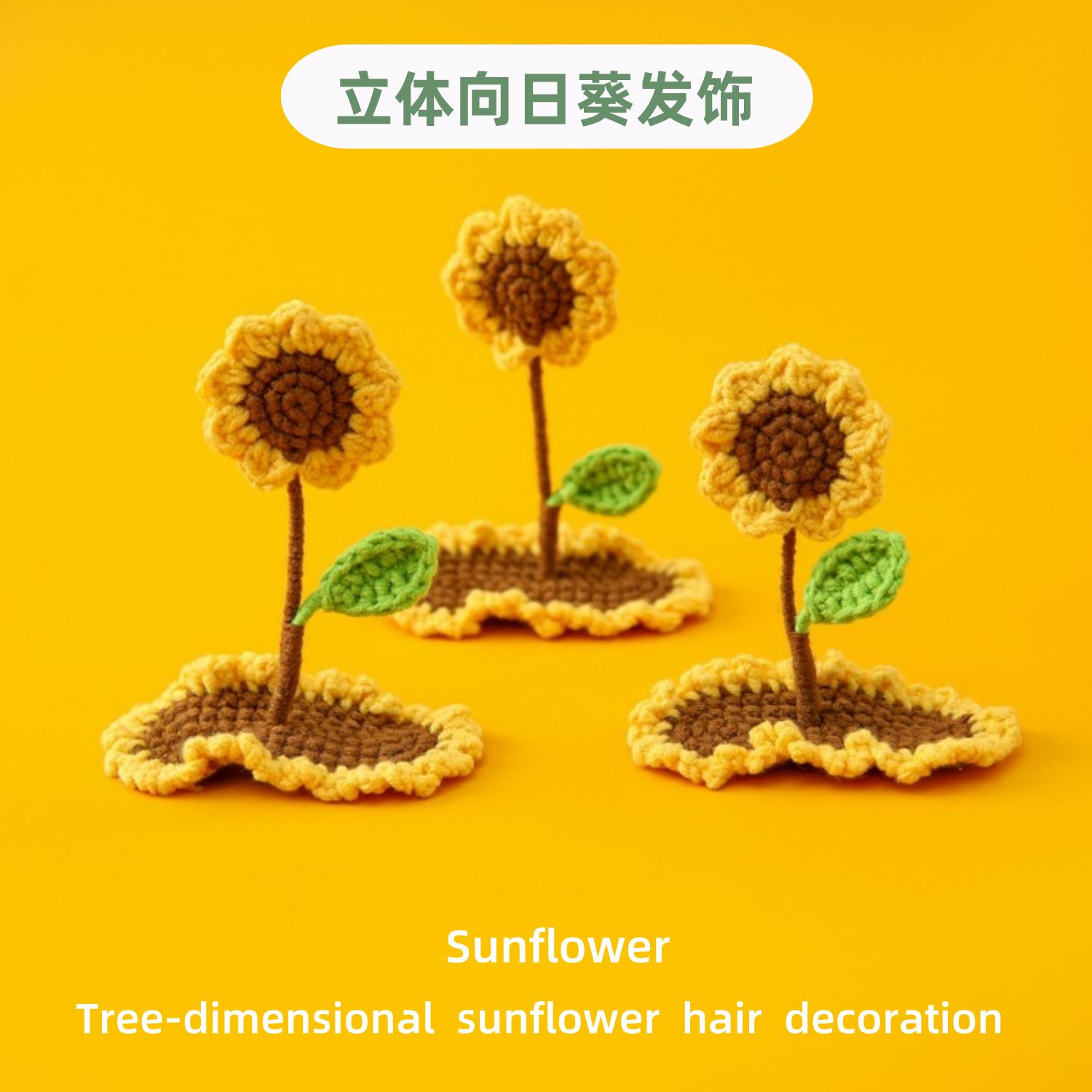 小学生の学院風は花の立体のひまわりの髪飾りを編みます。