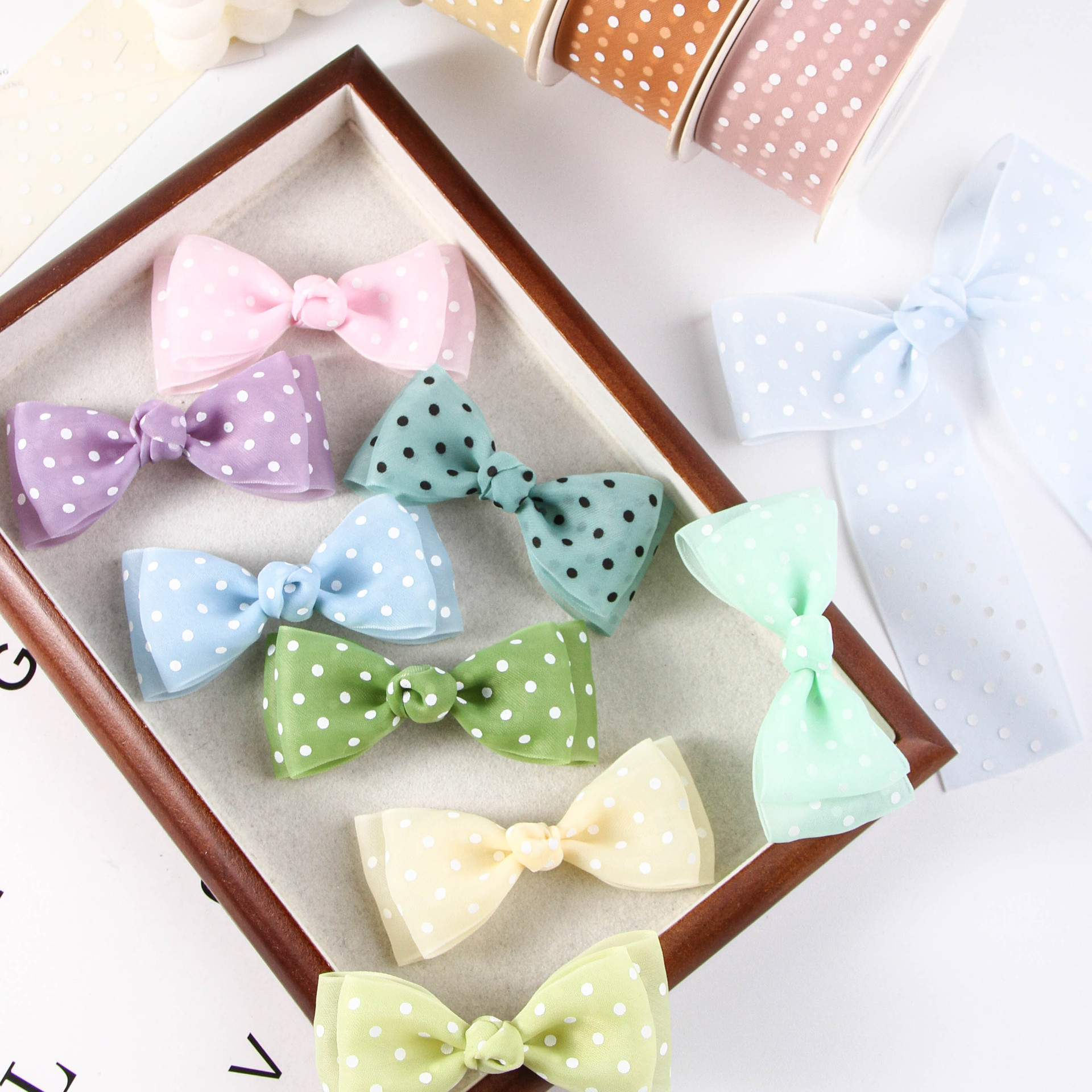 韓国の純粋な女の子水玉模様のガーゼバラのつぼみ diy 優しいヘアバンドポニーテールヘッドロープサイドクリップ衣類アクセサリー