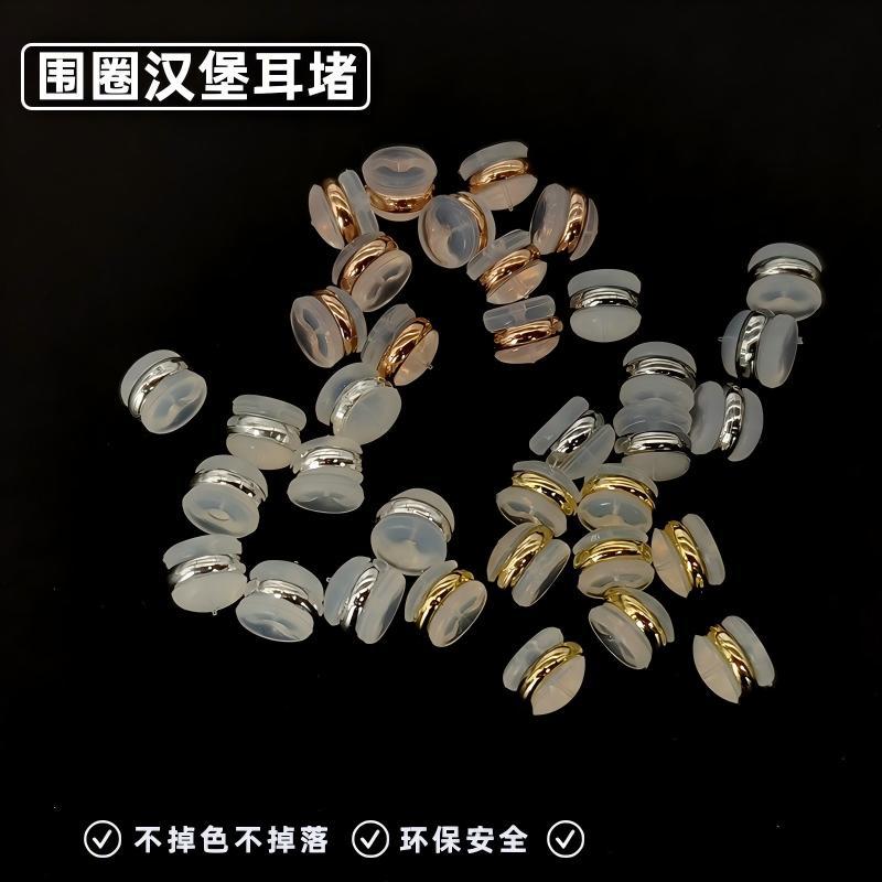 シリコン耳栓、色落ち防止サポート耳栓、ハンバーガー型耳栓、イヤリング用バックピース、イヤリング用リフター、イヤリングアクセサリーパーツ