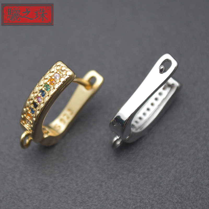 【工場】快手振音アマゾン速売通経典モザイクジルコン女性イヤリング部品耳フック銅胚