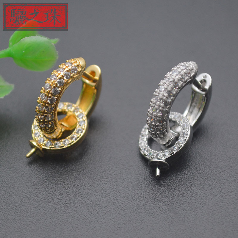 ゴールドプラチナマイクロ舗装ジルコンサークル耳フック耳クリップ耳バックル DIY ハーフホールパールイヤリングジュエリーアクセサリー
