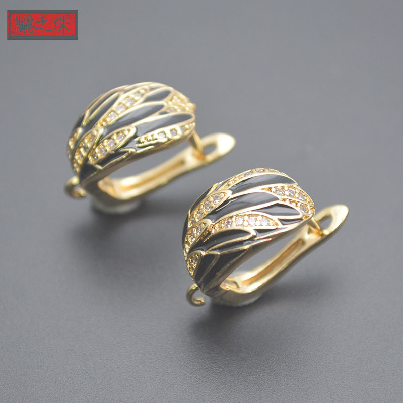 国境を越えたマイクロジルコン銅メッキ保色18K金色白K色黒滴油U字羽耳ボタンイヤリング