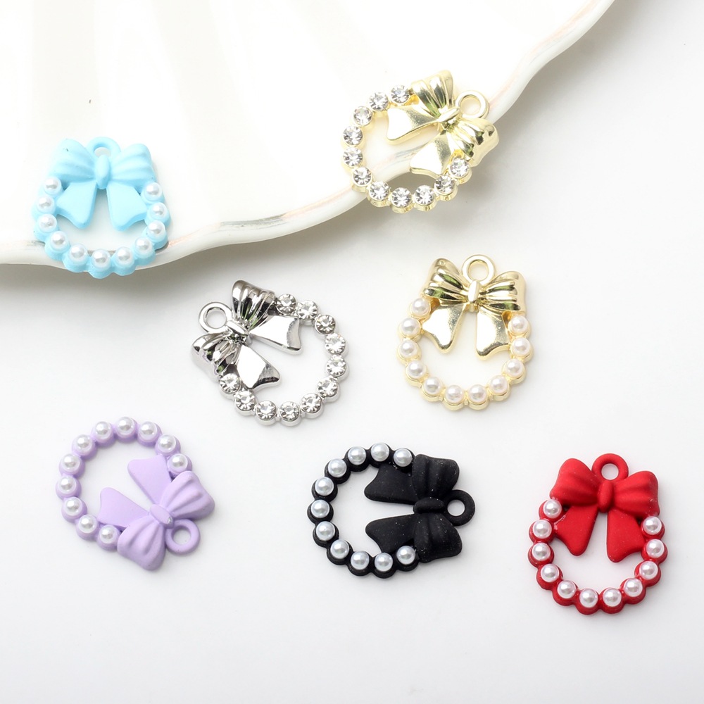 合金カラー塗装点ドリル真珠かわいい蝶ネクタイペンダントアクセサリーdiyアクセサリーイヤリングアクセサリー材料