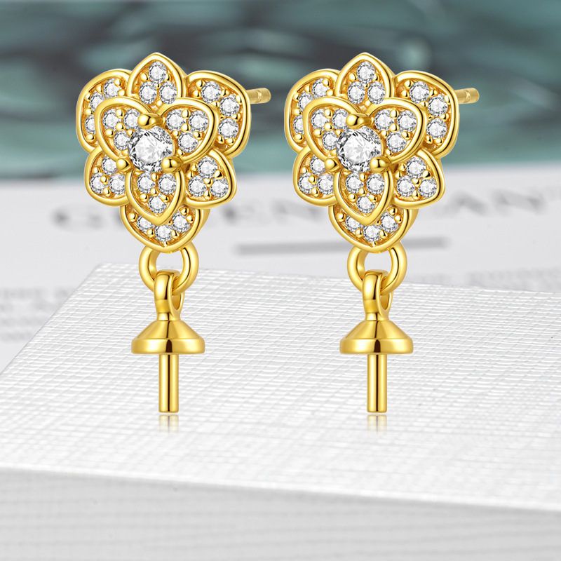 925 シルバー電気メッキ中空フラワーホルダーイヤリングビーズイヤリング半完成手作り DIY ジュエリーアクセサリー卸売 E0055