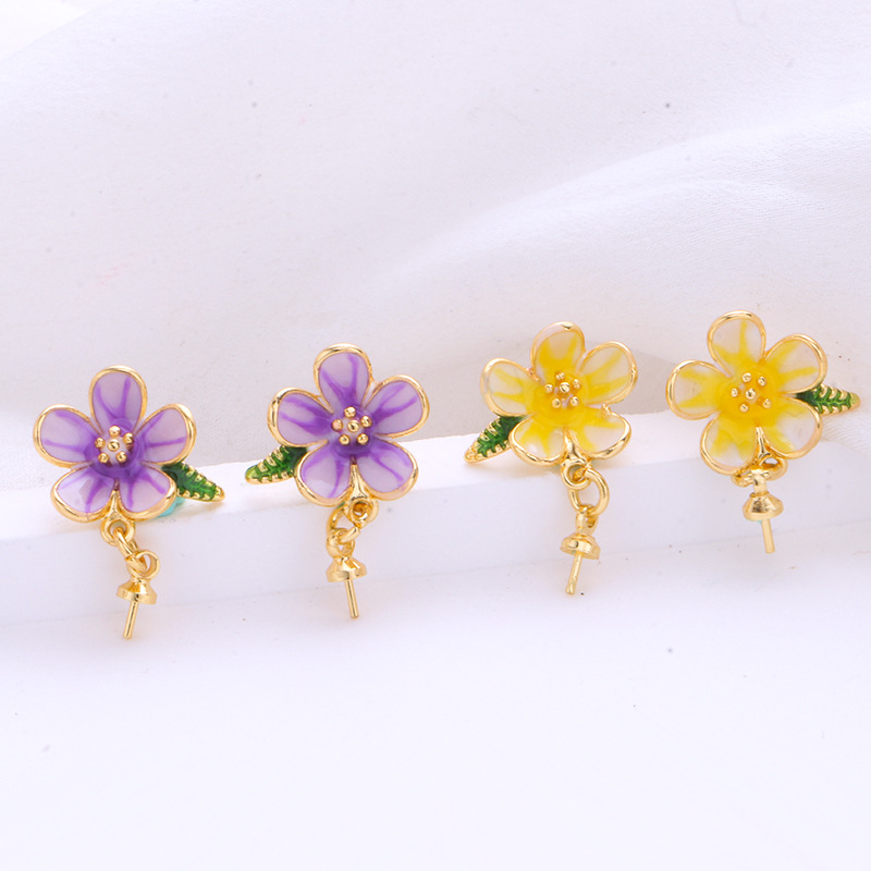 牧歌的なシリーズ紫色の小さな花の真珠のイヤリング空のホルダー 925 シルバー針オイルドリップイヤリングニッチイヤリングイヤリングアクセサリー