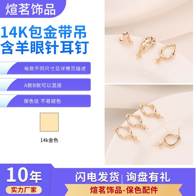 14k包みの桃の心は羊の目の針の真珠の帽子のイヤリングのdiyのイヤリングの部品のイヤリングの材料の純銀の耳の針を含んでいます。