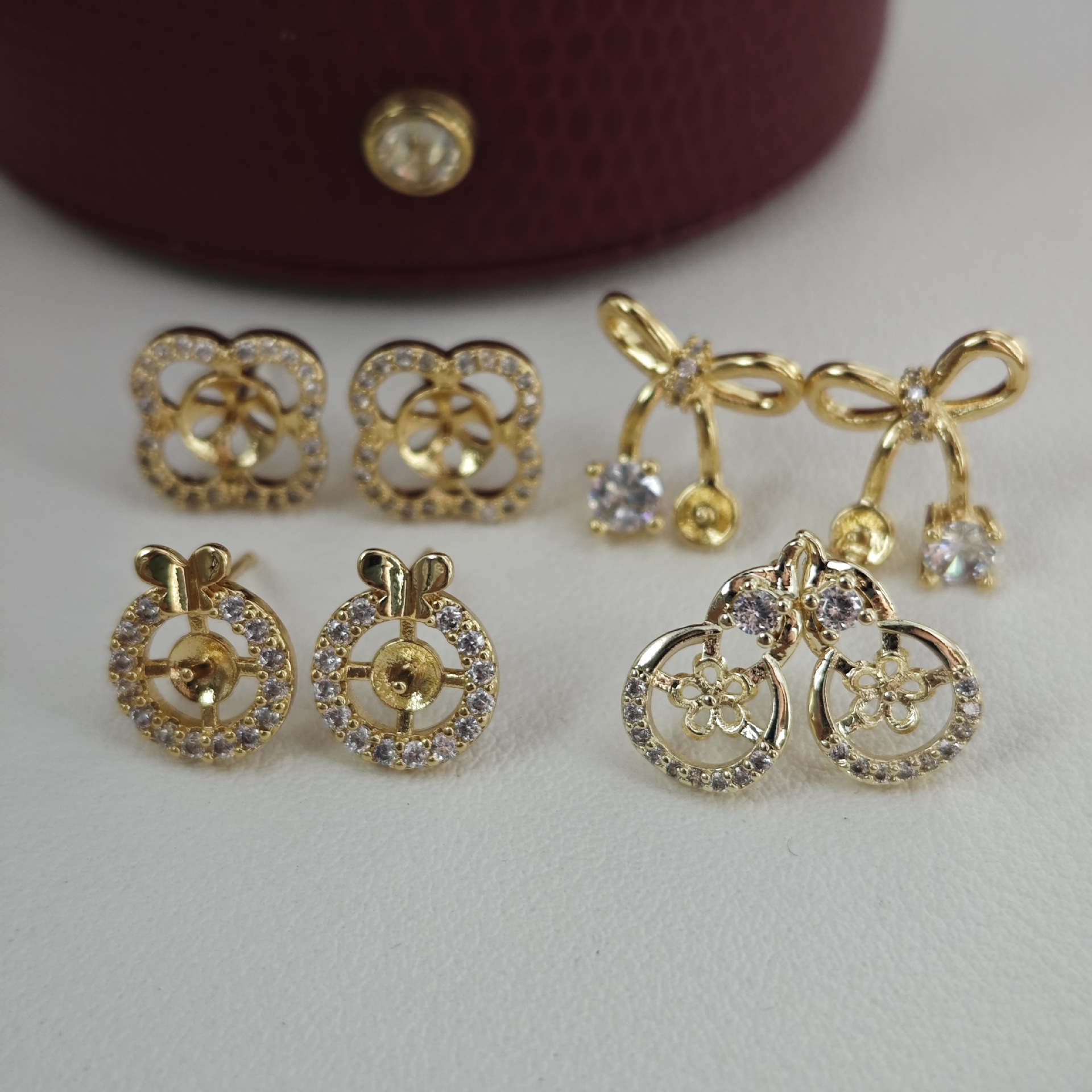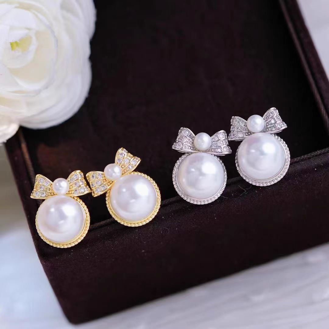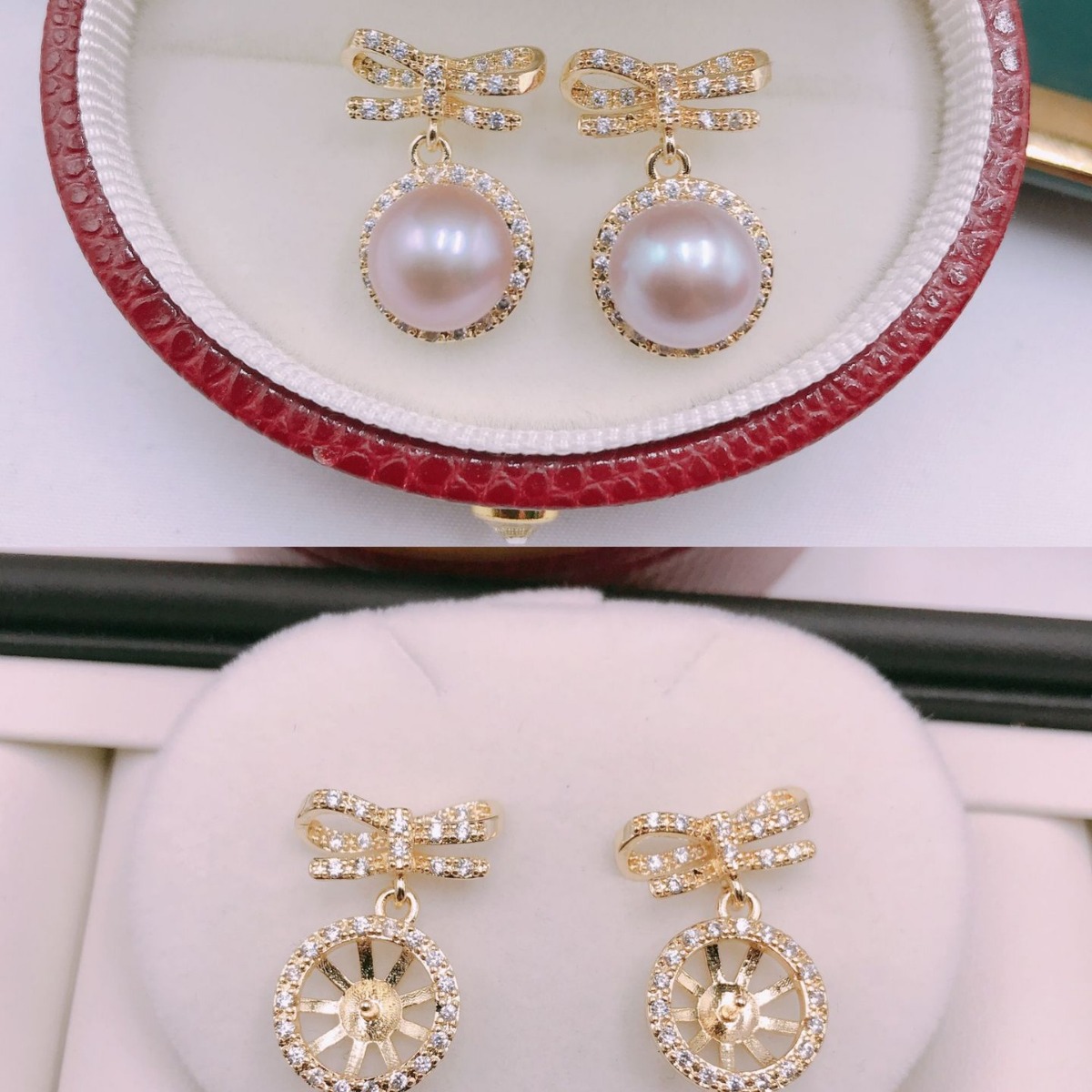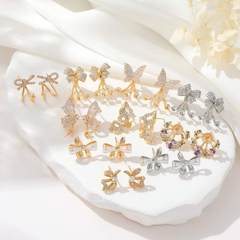 DIYS925 パールイヤリング半製品 空枠アクセサリー ジルコニア リボン型イヤリング ins風 ニッチ P1309