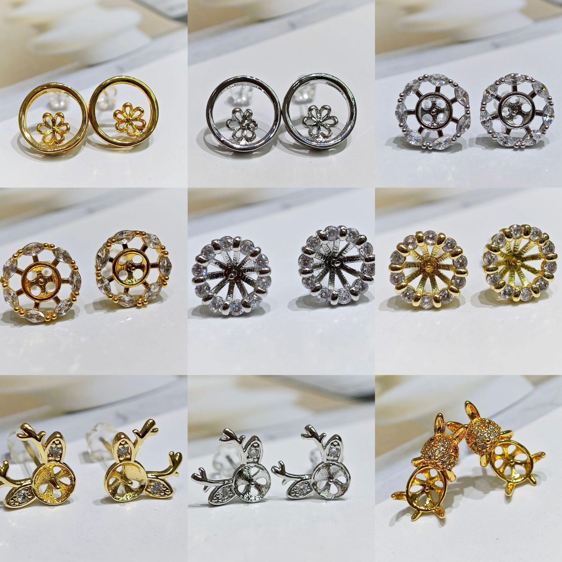 DIYピアス部品S925銀針ジルコン円形小鹿造形保色真珠ピアス空托メーカー直販