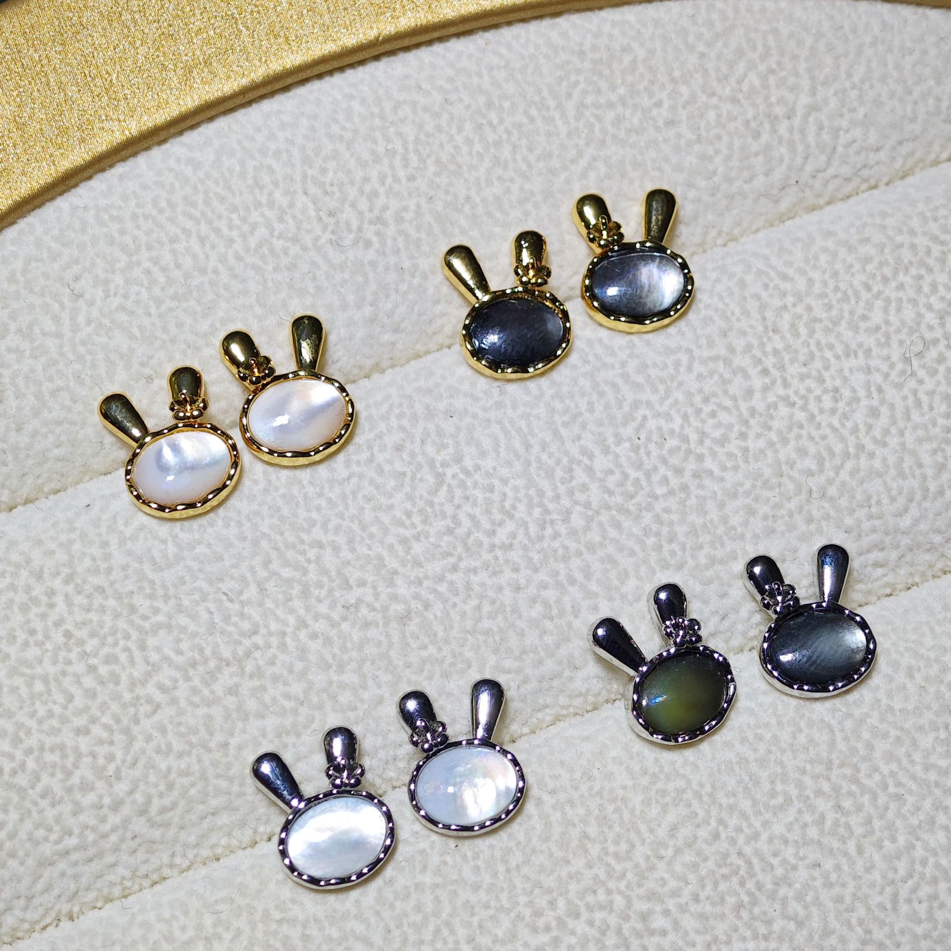DIY真珠部品手作りアクセサリー天然貝母兎S925純銀保色真珠ピアス