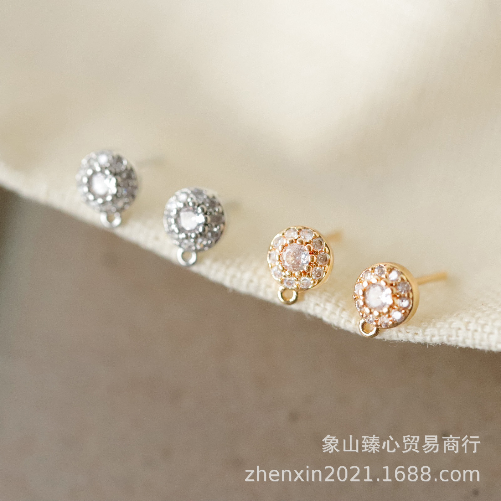 色保持銅メッキリアルゴールドシンプルでコンパクトなクラシックラウンドマイクロ象嵌ジルコンイヤリングイヤリング DIY 手作りアクセサリー