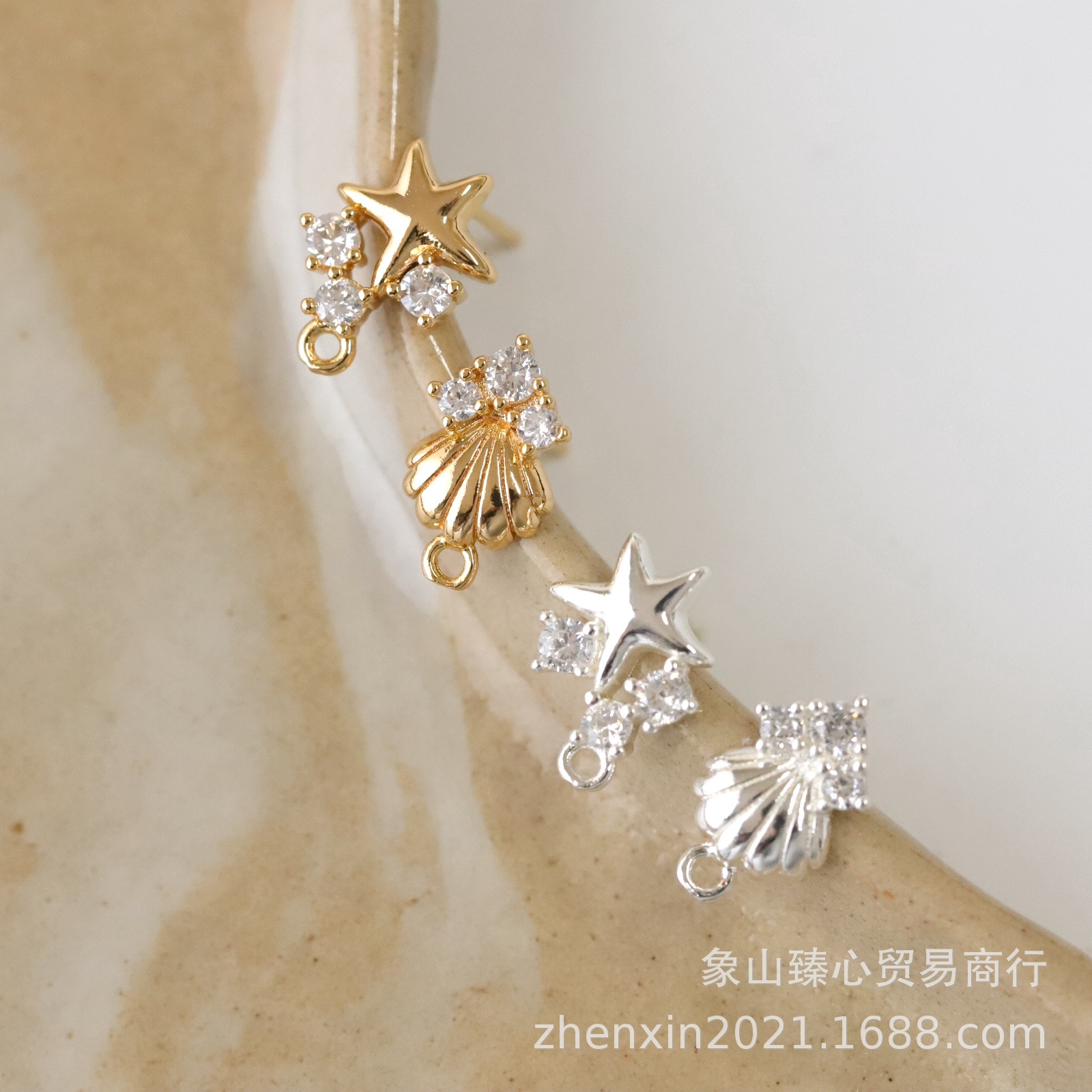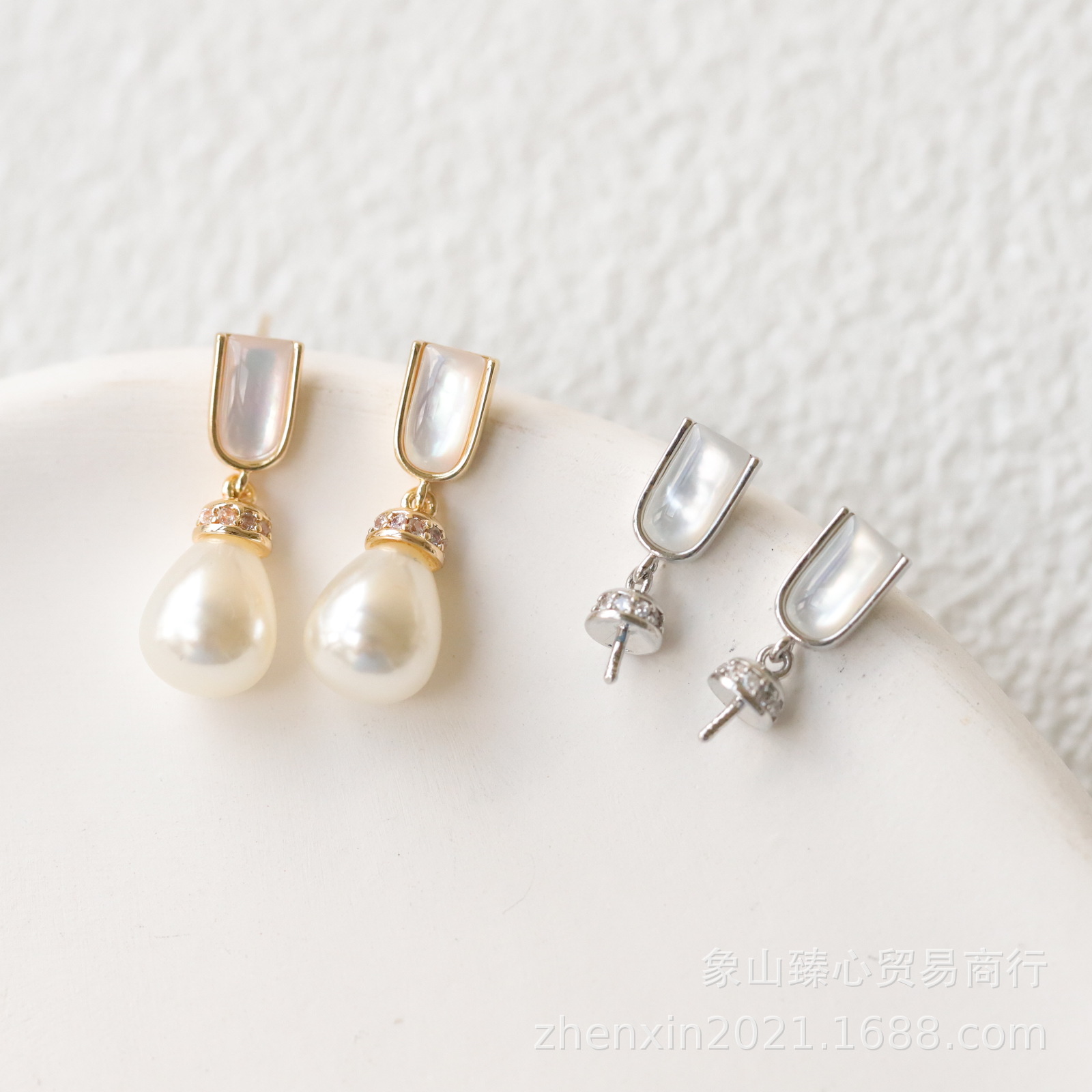 Diyイヤリングアクセサリー星真珠ピアスホルダー14kアクセサリー空ホルダー本体S925銀針アワビ貝イヤリング女性