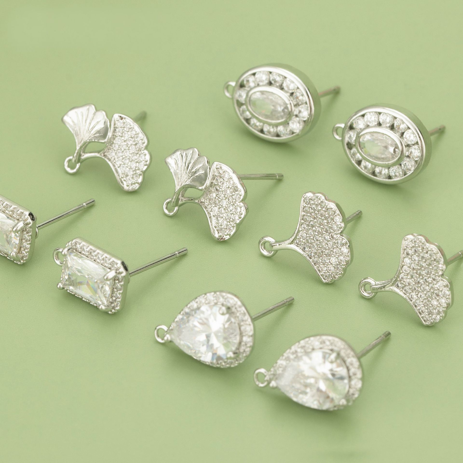 メッキ18k真金シンプル小清新ジルコニウム幾何学イチョウ葉ピアスdiyハンモック付き