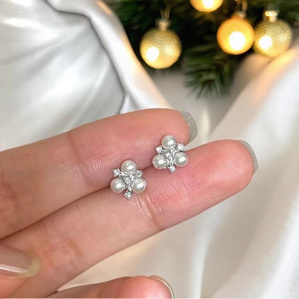 S925銀小花団雪花ピアス多珠4-5天然淡水小真珠ピアス春夏淑女金