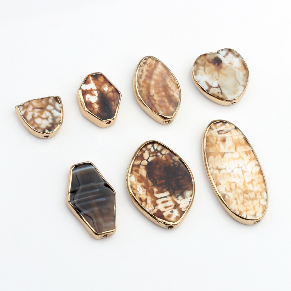 クロスボーダー専用レトロ天然石ひび割れ散珠幾何学穿孔ペンダントdiyアクセサリー卸売り