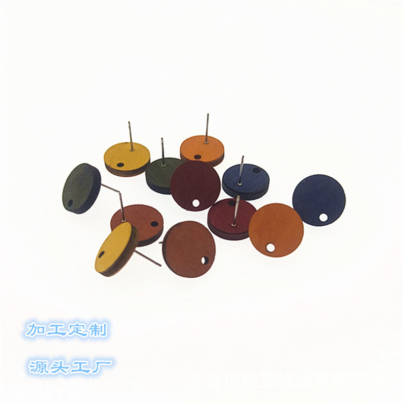 シンプルで丸い木の耳の針のイヤリングと吊り部品のdiyイヤリングの幾何学的な染色の木製のイヤリングの材料
