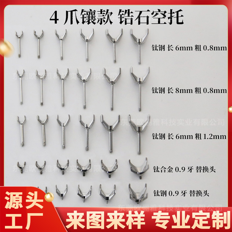 国境を越えた対外貿易卸売り加工ジルコンピアスステンレス部品外スパイラル四爪嵌め込み金空托単頭チタン鋼