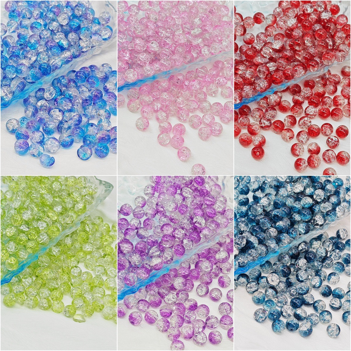 2024夏の新型10mm瑠璃珠爆花珠diyアクセサリー氷割れ2色グラデーションブレスレット散珠ビーズ