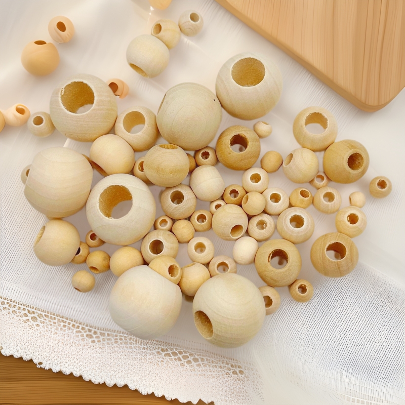 木製ビーズ、大穴ビーズ、小穴ビーズ、丸型ビーズ、木製穴あきビーズ、仏珠アクセサリー